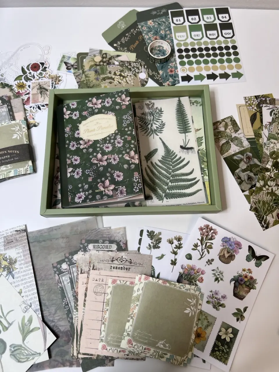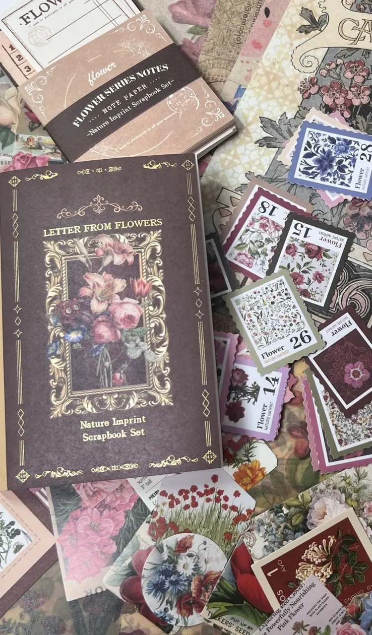 Kauniita skräppäyspaketteja, tarroja ja muistikirjoja käsillä tekemiseen.